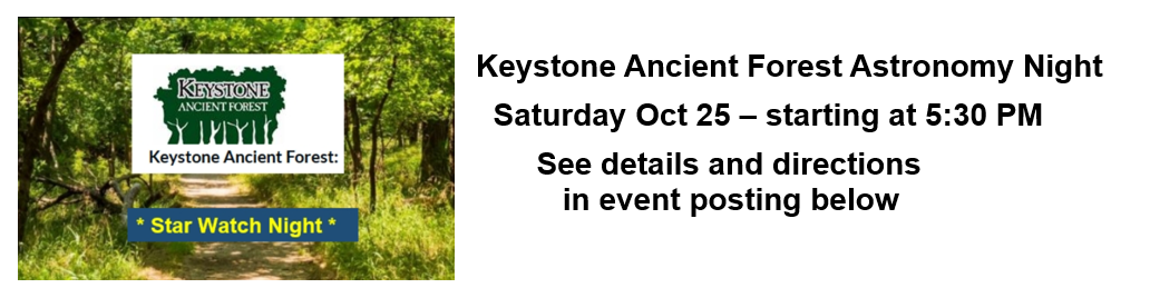 Wanting to get away from the glow of city lights and enjoy some stargazing? We invite you to make a visit to our Observatory located in darker skies SW of Tulsa. Details and directions are in the individual event postings. DO NOT RELY ON MISLEADING GOOGLE SEARCH INFORMATION THE OBSERVATORY IS ONLY OPEN AT SCHEDULED EVENT TIMES Events Section All EVENT TIMES are current season times.